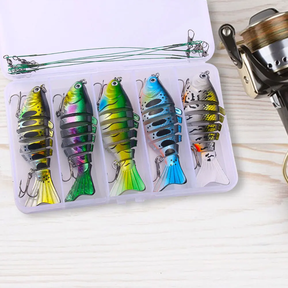 5Pcs Sinking Wobblers Fishing Lures Lifelike Multi-Section Hard Bait Artificial Bait for Bass Trout