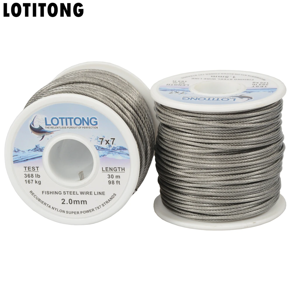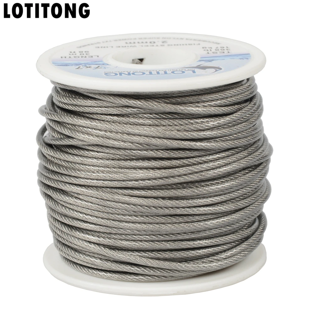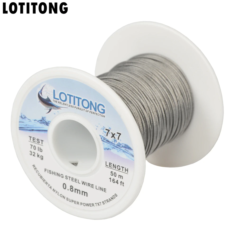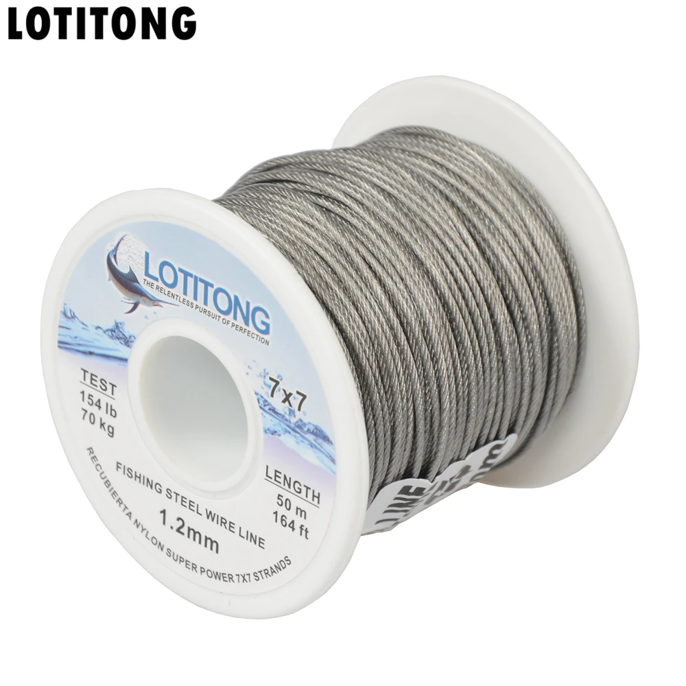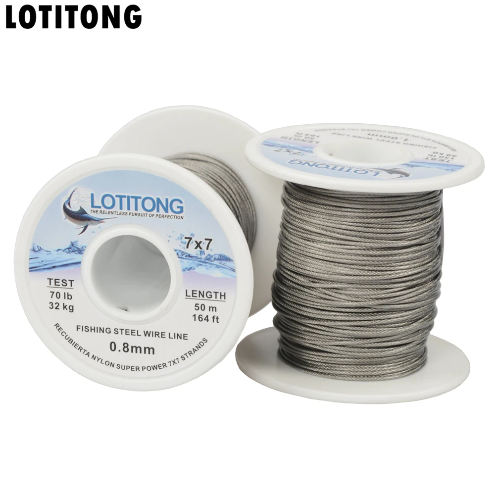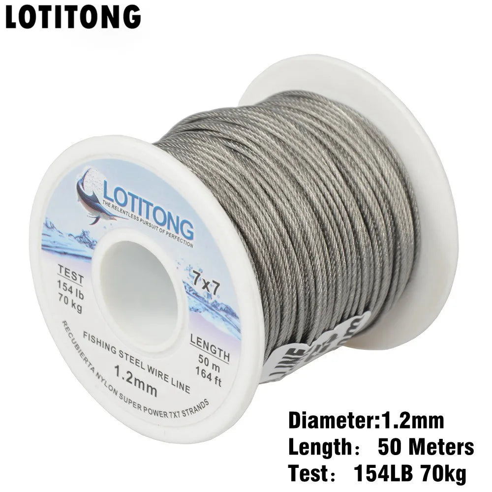 LOTITONG 70lb-368lb fishing steel wire Fishing lines 7x7 49 strands super soft wire lines Cover plastic Waterproof Leader line