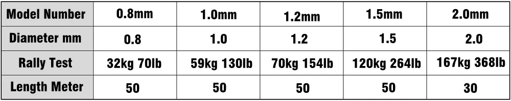 SIZE:Diameter2.0mm Long 30M Rally test 167KG 368LB