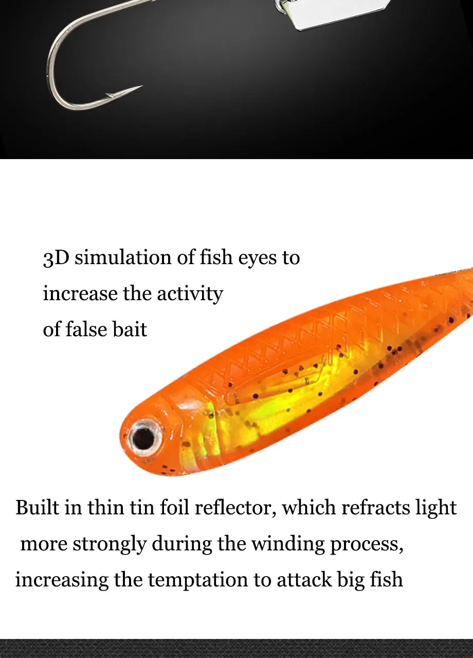 TPE premium material flexible and durable ,emit strong fishy flavor ,attract big fish