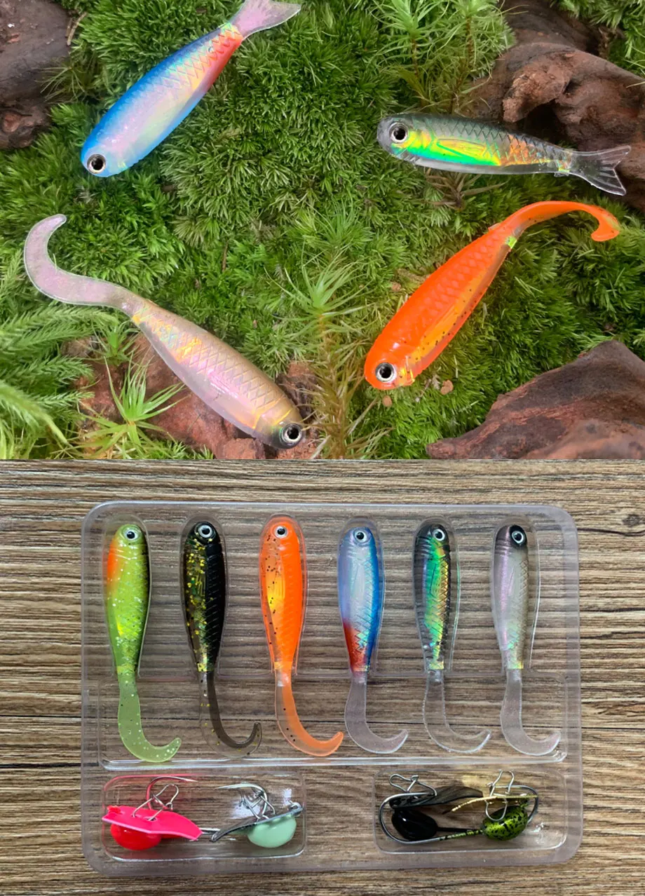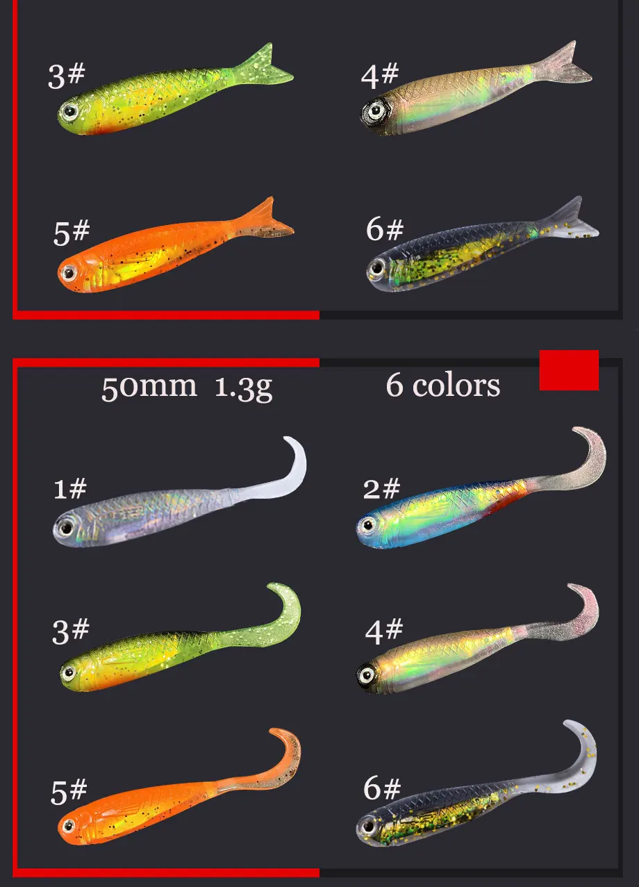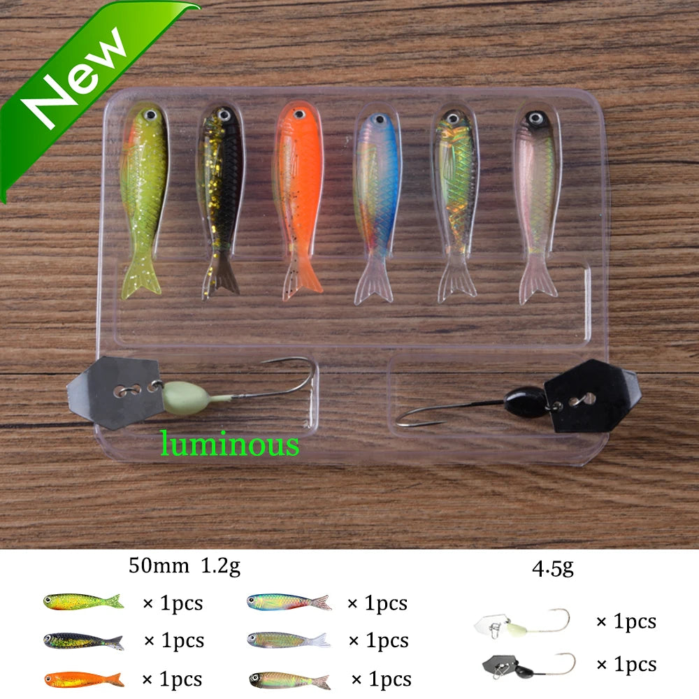 Soft Lures Kit 1.3g 5cm Tail Worm Spinner Jig Hook Crankbait Pesca Gear Tackle 6pcs Bait 10pcs Swimbait Carp Fishing Lure Set